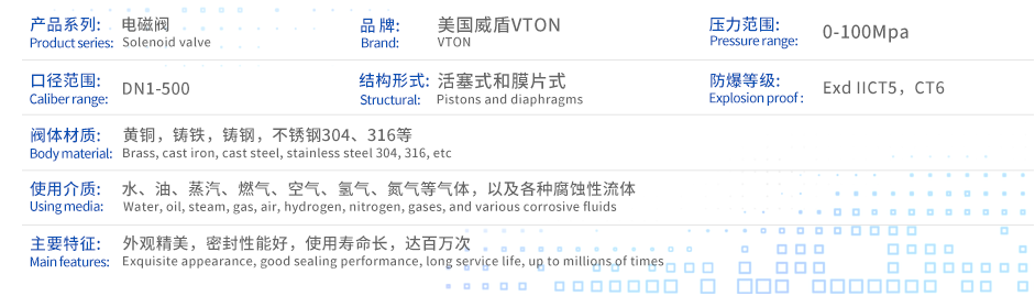 美国威盾VTON低温电磁阀主要产品有进口液氮用电磁阀,进口液氮常闭电磁阀,进口液氮常开电磁阀,进口液氮低温电磁阀,进口液氮不锈钢电磁阀,进口液氮高压电磁阀,进口液氮防爆电磁阀,进口液氮螺纹电磁阀,进口液氮法兰电磁阀。