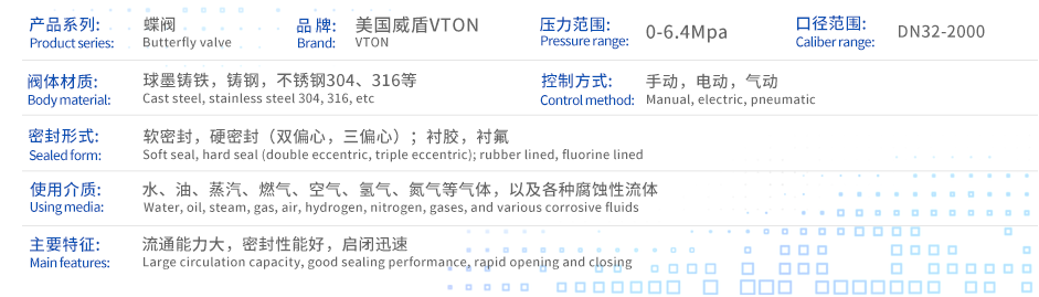 进口双向焊接蝶阀(美国威盾VTON),Double welded butterfly valve,是指采用精密的J形弹性密封圈和三偏心多层次金属硬密封结构,采用对焊的连接方式,广泛用于供暖、供热,治金、电力、石油化工等工业管道上,作调节流量和载断流体使用,作调节流量和载断流体使用的蝶阀。