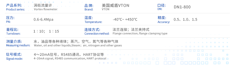 三、进口分体式涡街流量计技术参数